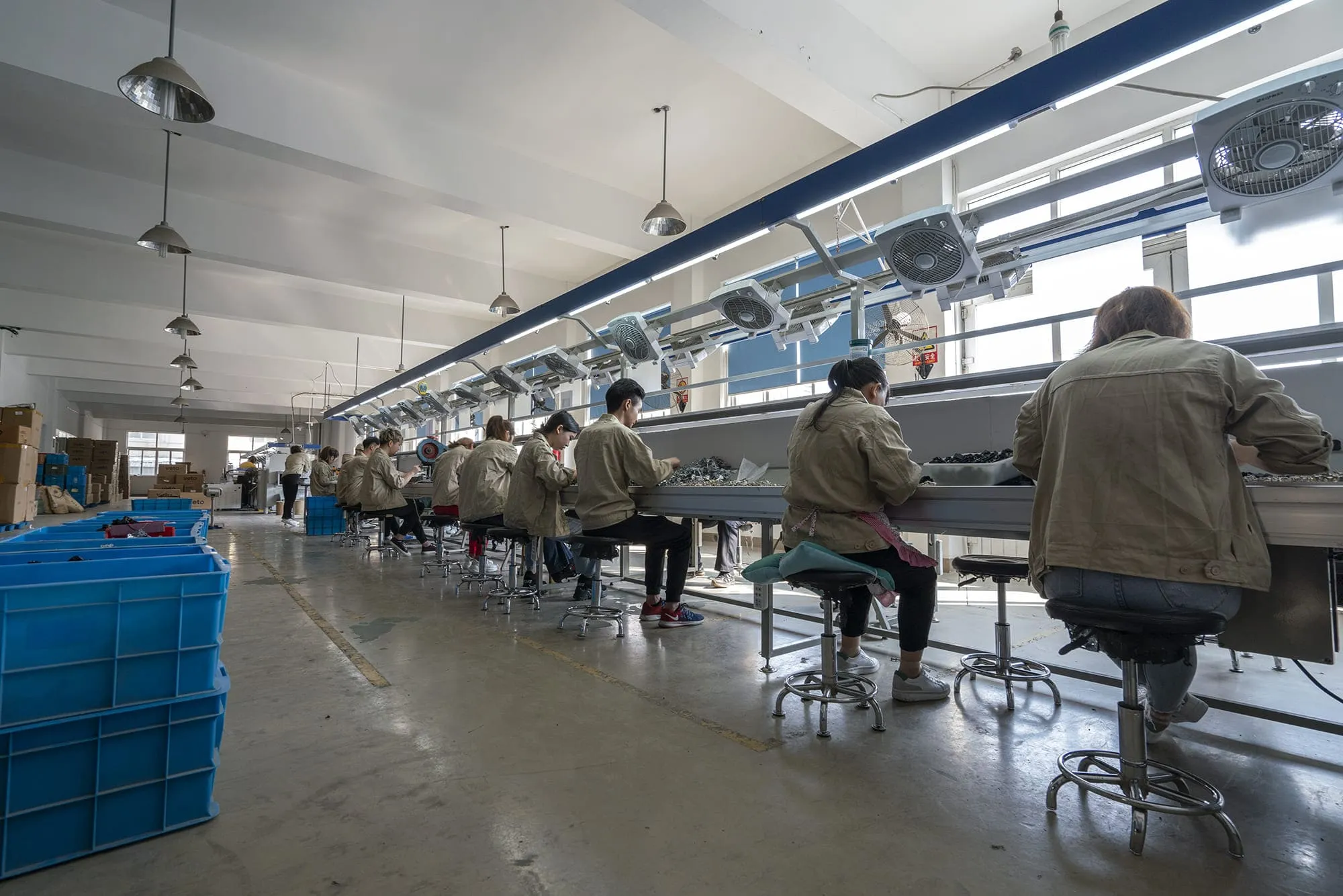 Assembly lines follow strict work instructions. Dedicated QC checks function, appearance, and custom details in real time.